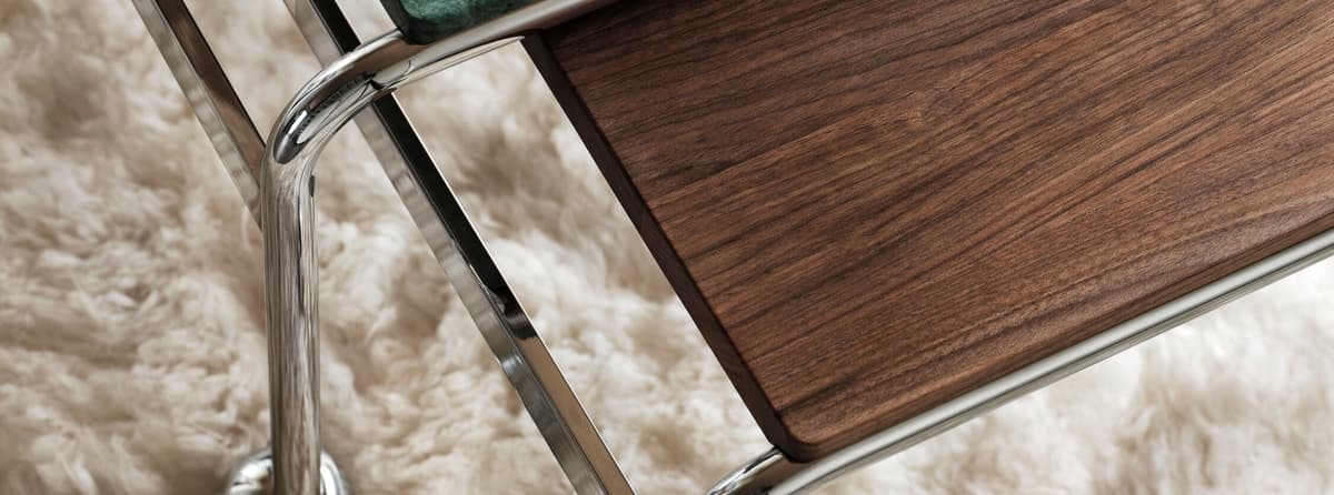 Based on Bruno Mathsson’s original table, designed to accompany his classic chair, this option provides the largest amount of surface space, but with the same elegant aesthetics of the Karin collection. The chrome-plated frame is topped in exclusive marble or walnut.